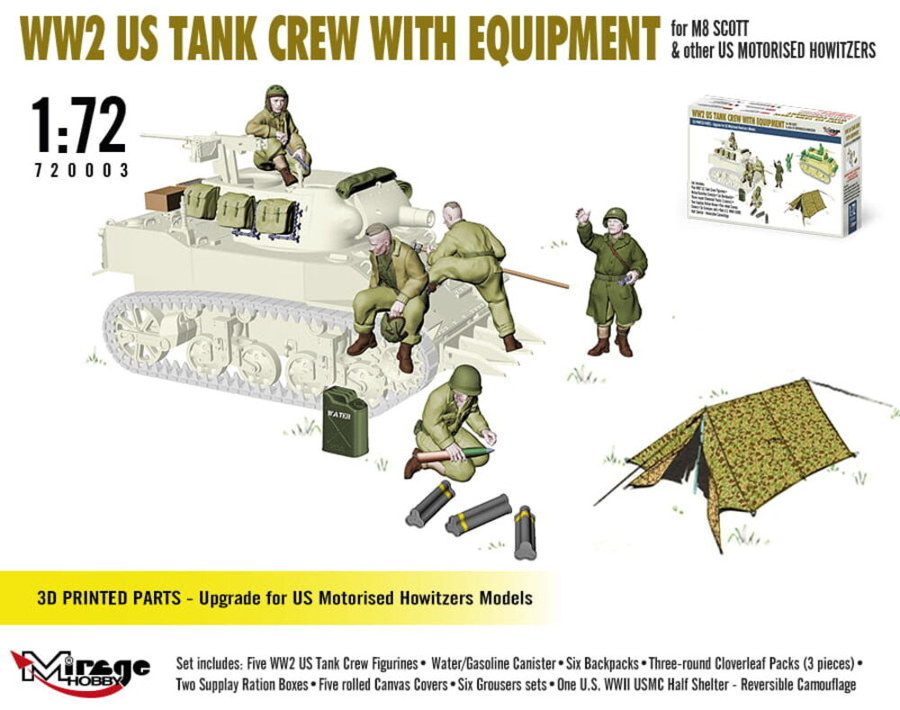 WW2 US TANK CREW WITH EQUIPMENT for M8 SCOTT & other US MOTORISED HOWITZERS